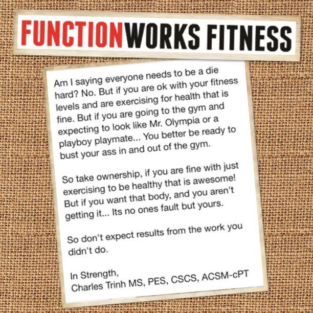 Reality Check This entry was posted on July 3, 2014, in Uncategorized and tagged Abs, exercise, fitness, functionworks fitness, gym, hawaii, health, Honolulu, nutrition, personal trainer, strength coach, weight loss. Bookmark the permalink. Leave a comment Go backYour message has been sent Name(required) Warning Email(required) Warning Website Warning Comment(required) Warning Warning. Submit Δ Share this: Click to share on Facebook (Opens in new window) Facebook Click to share on X (Opens in new window) X Like Loading... Related
